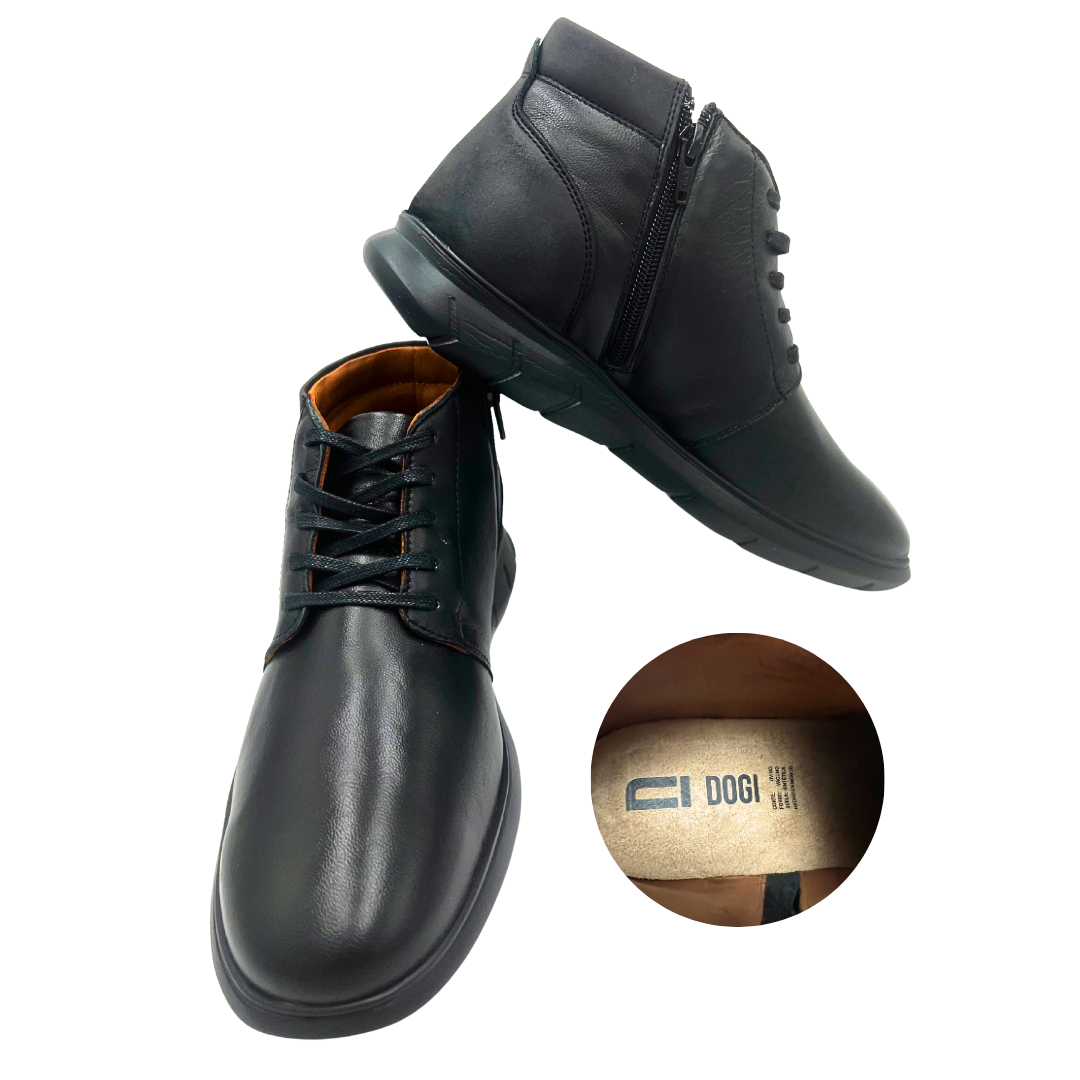 Botín Dogi de diseño elegante que combina belleza y comodidad en cada paso. Confeccionado con periguey de alta calidad y forro de res suave, proporciona calidez y durabilidad. La plantilla de confort amortigua tus pies durante todo el día, mientras que la suela antiderrapante y resistente garantiza seguridad en cualquier superficie. El cierre práctico facilita ponértelo y quitártelo sin esfuerzo. Perfecto para quienes buscan un calzado que no comprometa estilo ni comodidad.