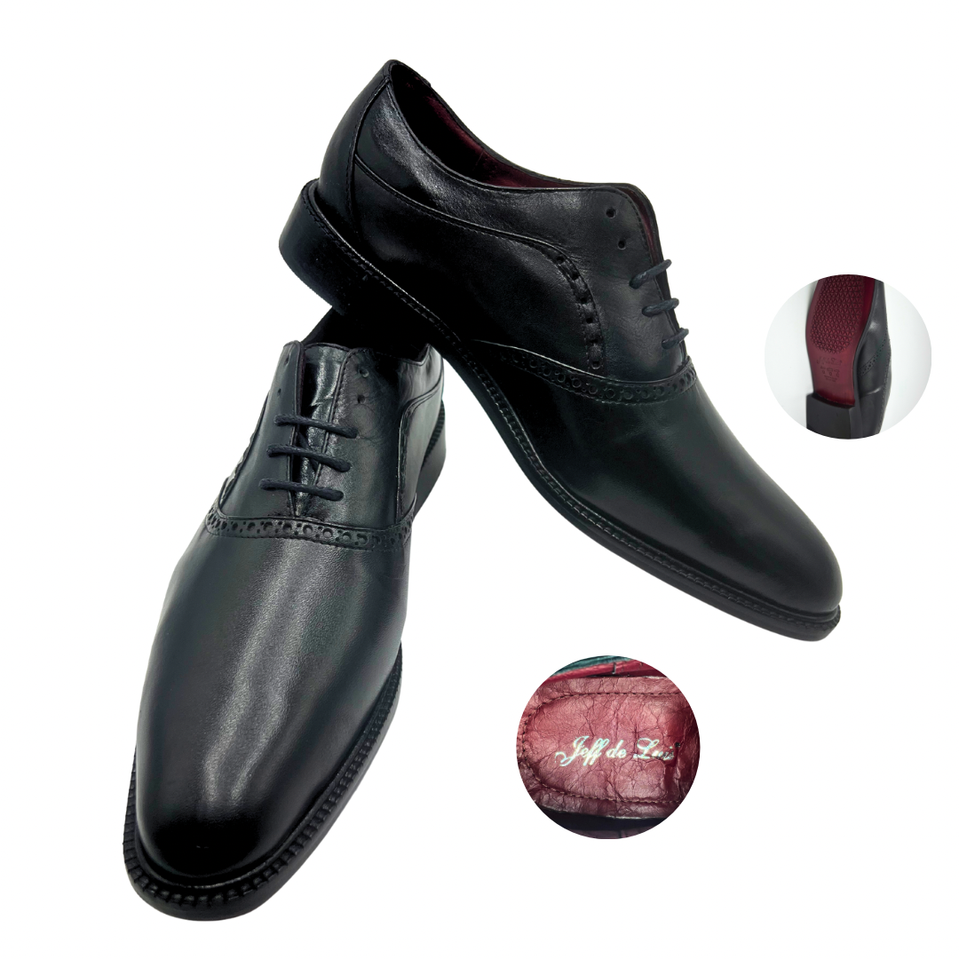 Descubre la sofisticación del Oxford Jeff, una pieza maestra del calzado clásico. Elaborado con ternera de chaleco cerrado y horma oval, este zapato combina elegancia atemporal con confort excepcional. Su forro de cabra proporciona suavidad y transpirabilidad, mientras que la suela de cuero auténtico garantiza durabilidad y un acabado refinado. La plantilla acojinada envuelve tu pie en comodidad durante todo el día, permitiéndote lucir impecable sin comprometer el bienestar. Perfecto para ocasiones formales o para elevar tu estilo cotidiano con distinción.